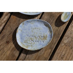 Coupelle en grès modelé à la main. Émaillé. Message écrit "There is no planet B".